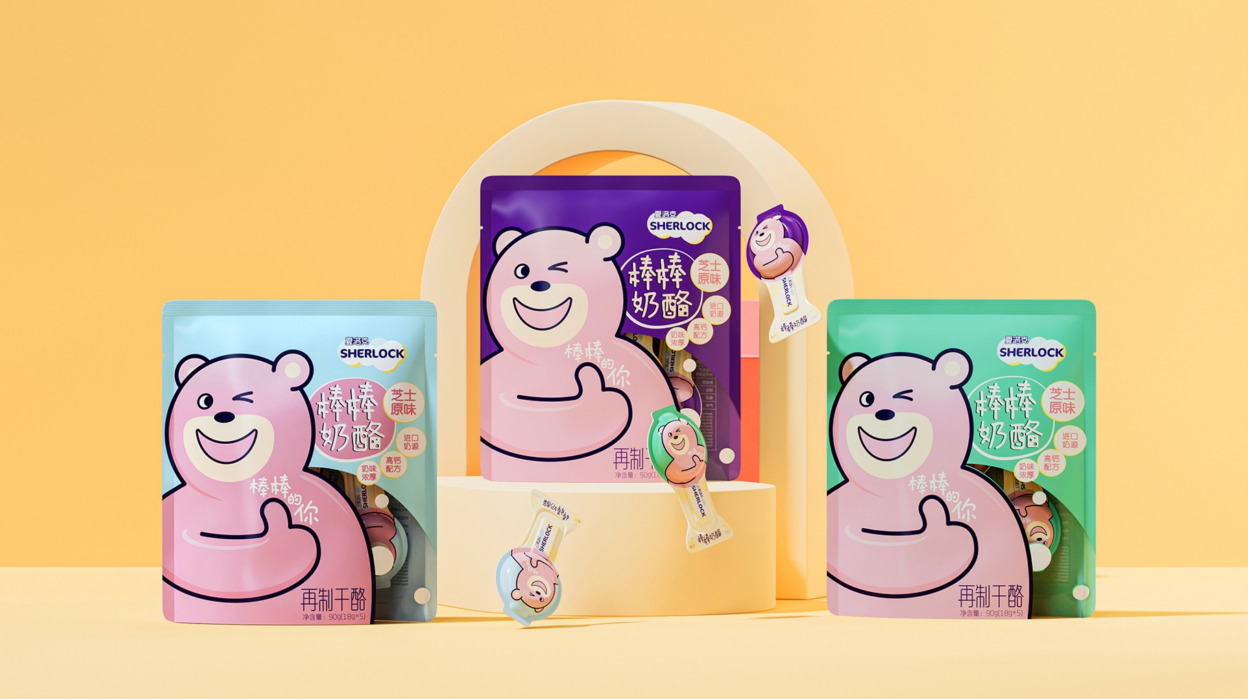 夏洛克,奶酪棒包裝設計,棒棒奶酪食品包裝設計,奶酪棒系列產品包裝設計,食品包裝設計公司  深圳食品包裝設計公司