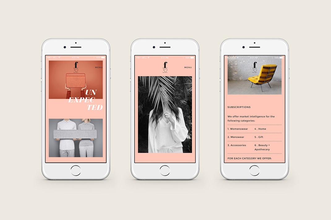 F32是一家美國(guó)時(shí)尚觀察公司,由吉娜(Gina)和麗莎·普里奧洛(Lisa Priolo)創(chuàng)立,在洛杉磯設(shè)有辦事處,致力于尋找和支持那些將繼續(xù)塑造全球文化的藝術(shù)家和品牌。F32與平面設(shè)計(jì)工作室Blok Design合作,更好地表達(dá)了這一愿景,以及他們的精致和高度當(dāng)代的審美敏感性。這是通過在名片、貼紙、文具和趨勢(shì)報(bào)告的印刷中命名和視覺識(shí)別,并通過一個(gè)新的響應(yīng)網(wǎng)站在線實(shí)現(xiàn)的。