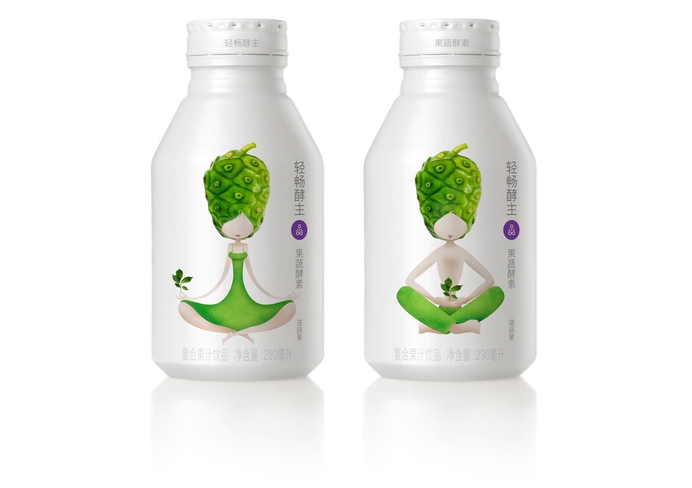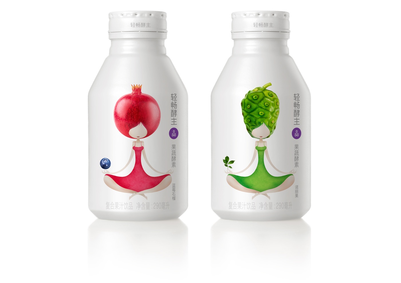 設(shè)計(jì):我們的客戶將產(chǎn)品指定為“可飲用瑜伽”。我們始終忠實(shí)于該描述,以尋找能夠最流暢地傳達(dá)信息的插圖。我們以瑜伽為靈感的角色是人類水果嬉戲的混合體,僅限于優(yōu)美的曲線線條和自然色彩,因此可以自然,樸實(shí)的方式喚起品位,寧靜和身心健康。兩種水果-植物的組合(諾麗和接骨木花/玫瑰,石榴和藍(lán)莓)在每個(gè)角色的特征中都很明顯,而包裝的其余部分則保持白色,并平衡所有相關(guān)信息的字體。這是一個(gè)包裝,著重于不同設(shè)計(jì)元素的有效和流暢的協(xié)作,以建議您放心,保持身體平衡以及天真,年輕的心情。